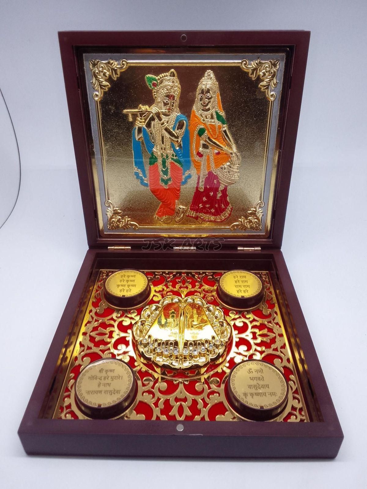 Shree Radha Krishna Gold Plated Photo Frame Box