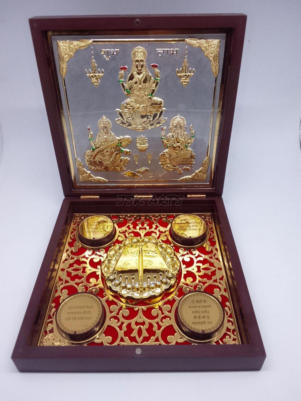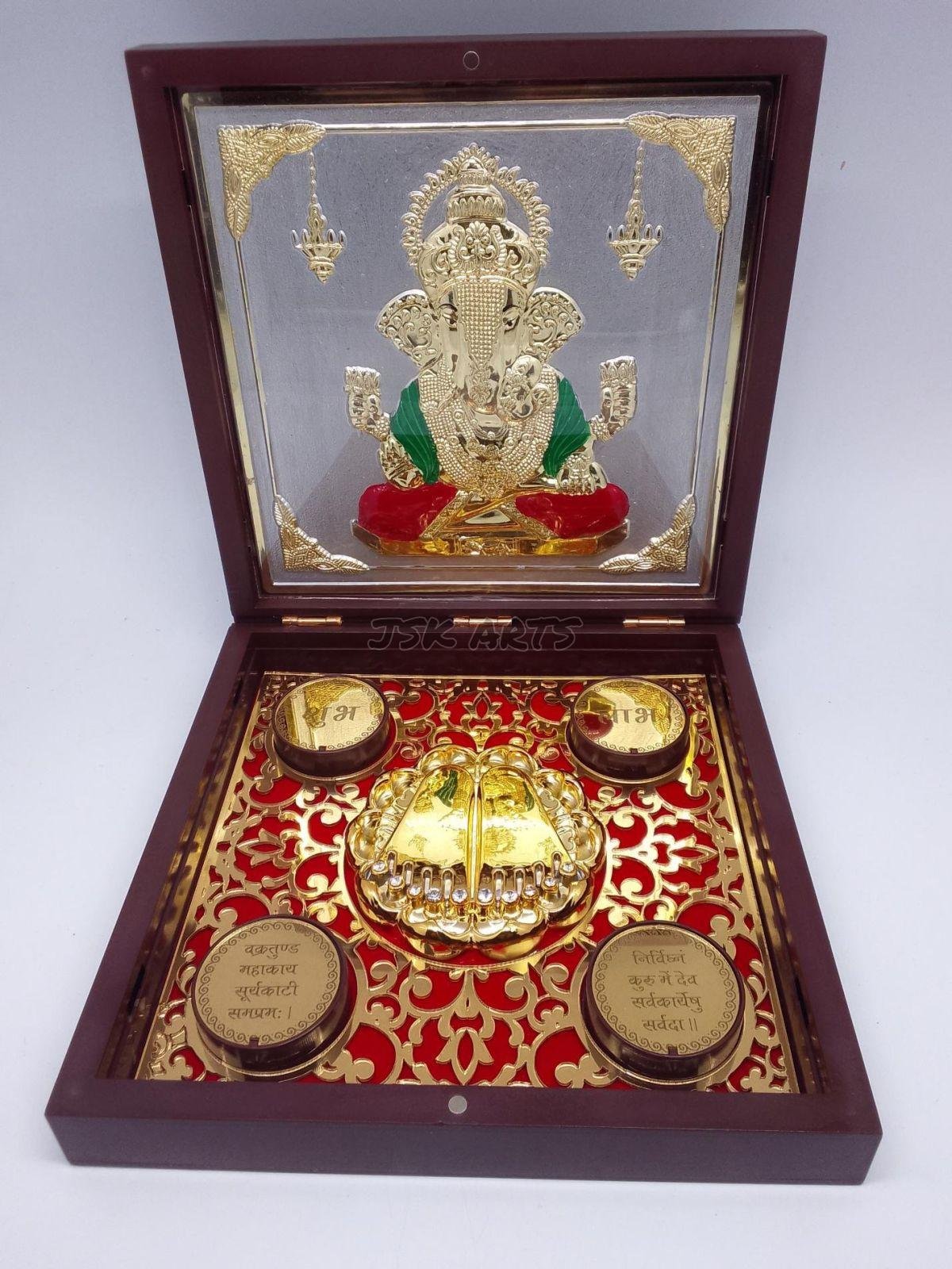 Being a foremost organization in this industry, we are actively engaged in offering the finest quality range of Divinity Laxmi Ganesh Gold Plated Photo Frame Box.